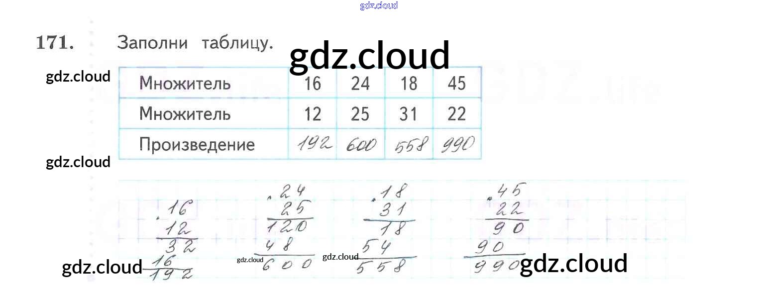 Ответ на задание 171 Рабочая тетрадь Математика за 3 (третий) класс Рудницкая, Юдачева Начальная школа XXI века 2017 Часть 1, 2