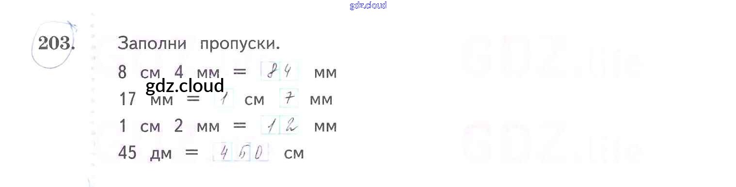 Ответ на задание 203 Рабочая тетрадь Математика за 3 (третий) класс Рудницкая, Юдачева Начальная школа XXI века 2017 Часть 1, 2