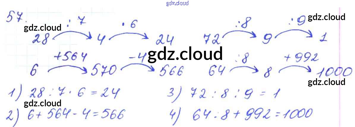 Ответ на задание 57 Рабочая тетрадь Математика за 3 (третий) класс Рудницкая, Юдачева Начальная школа XXI века 2017 Часть 1, 2