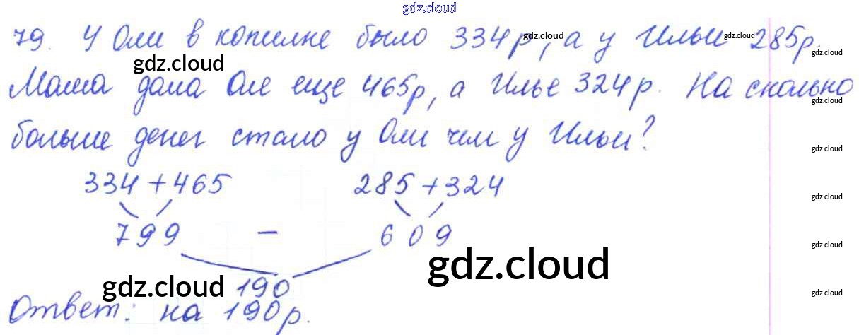 Ответ на задание 79 Рабочая тетрадь Математика за 3 (третий) класс Рудницкая, Юдачева Начальная школа XXI века 2017 Часть 1, 2