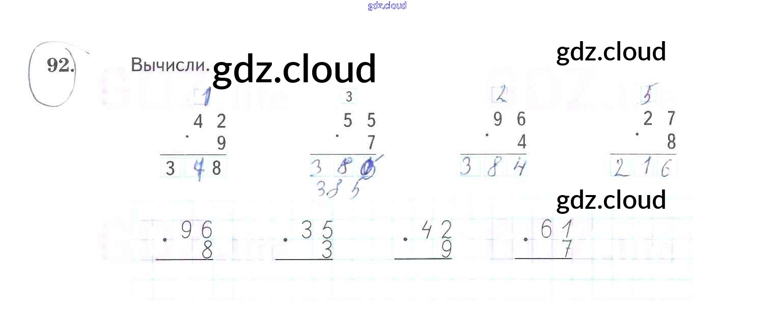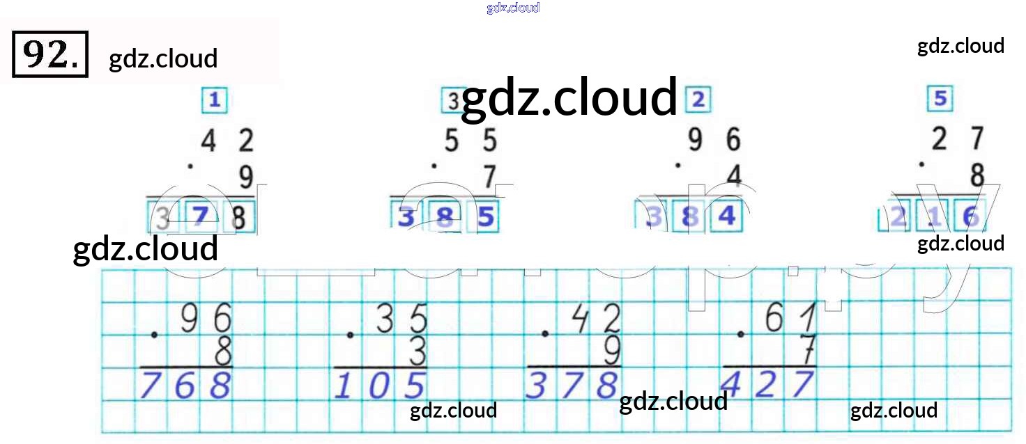Ответ на задание 92 Рабочая тетрадь Математика за 3 (третий) класс Рудницкая, Юдачева Начальная школа XXI века 2017 Часть 1, 2