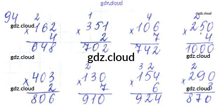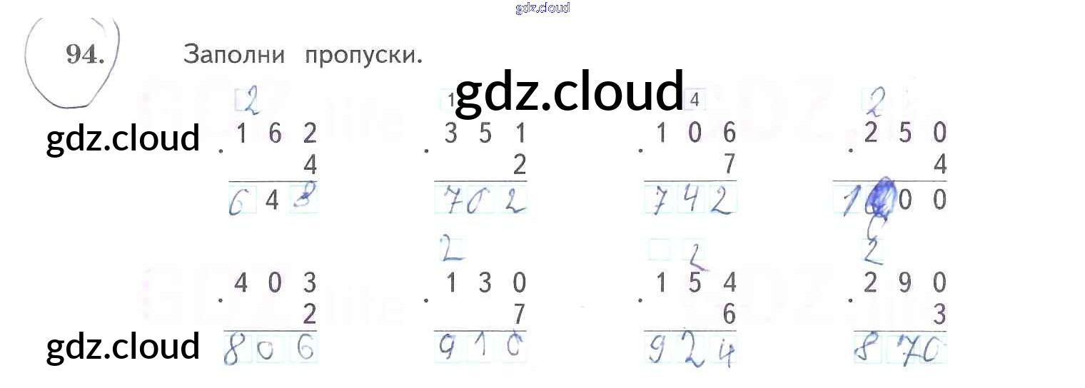 Ответ на задание 94 Рабочая тетрадь Математика за 3 (третий) класс Рудницкая, Юдачева Начальная школа XXI века 2017 Часть 1, 2