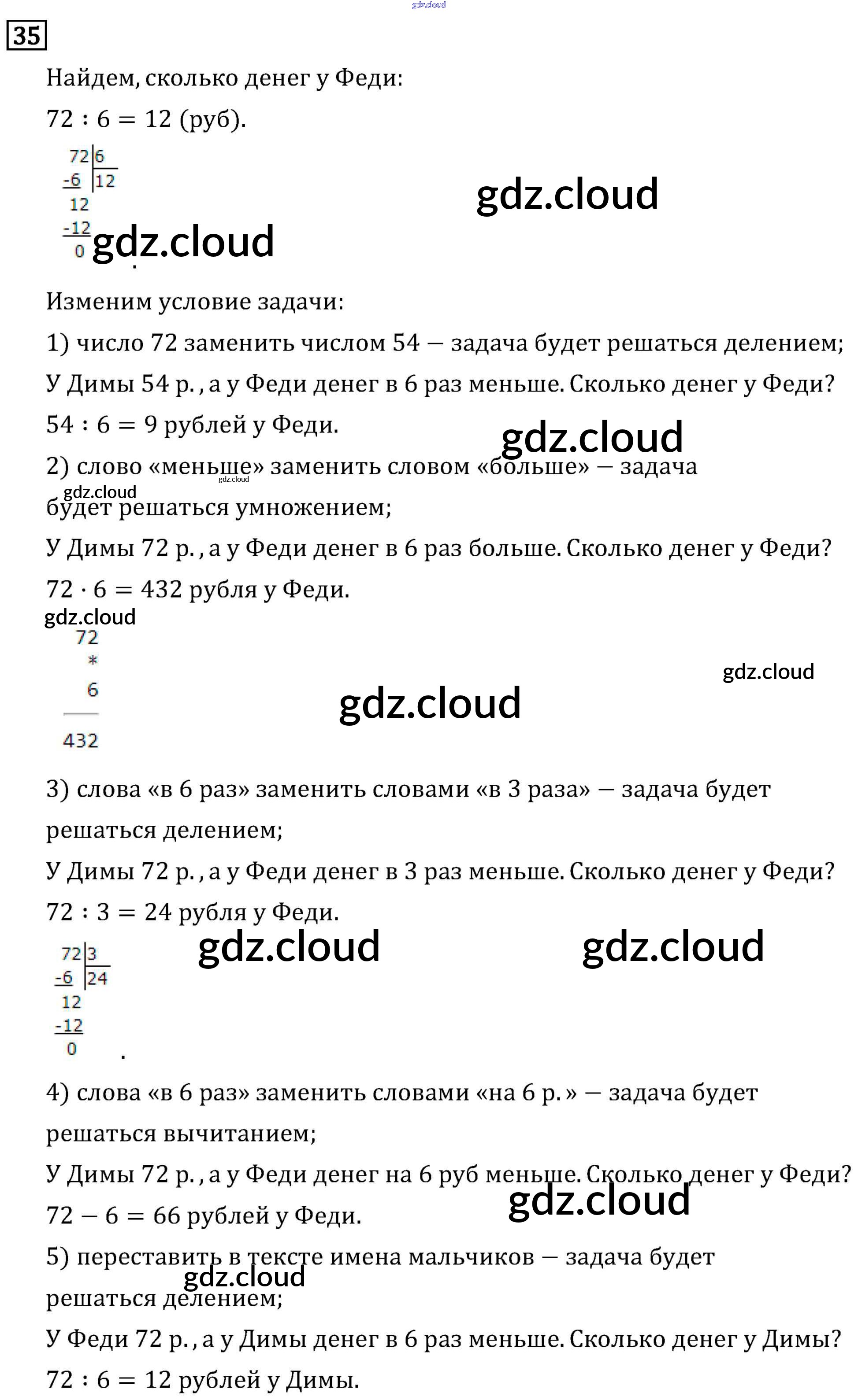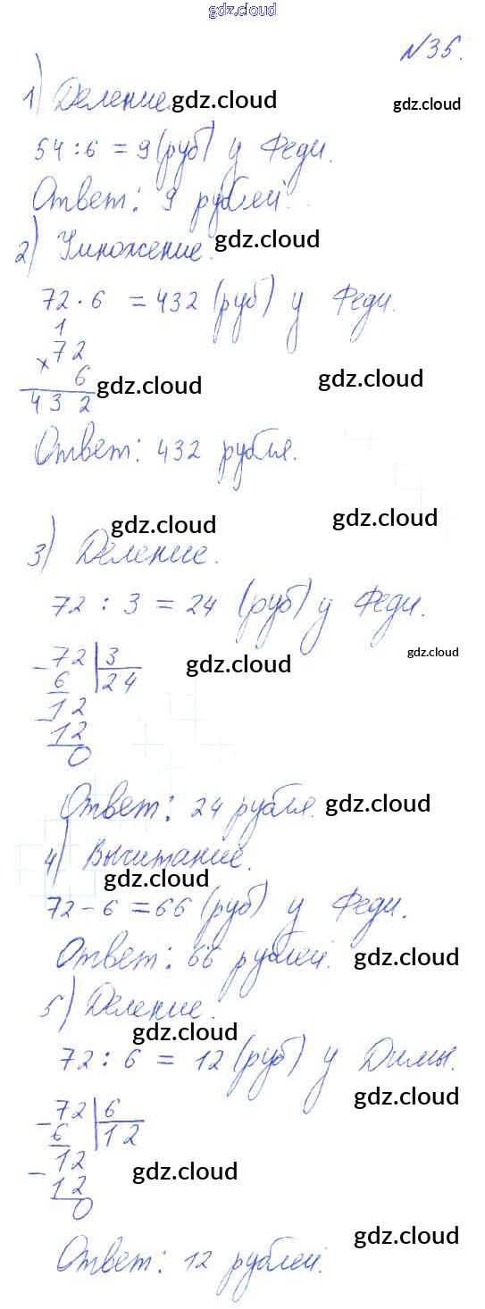 Ответ на задание 35 Учебник Математика за 3 (третий) класс Рудницкая, Юдачева Начальная школа XXI века 2016 Часть 1, 2