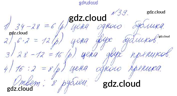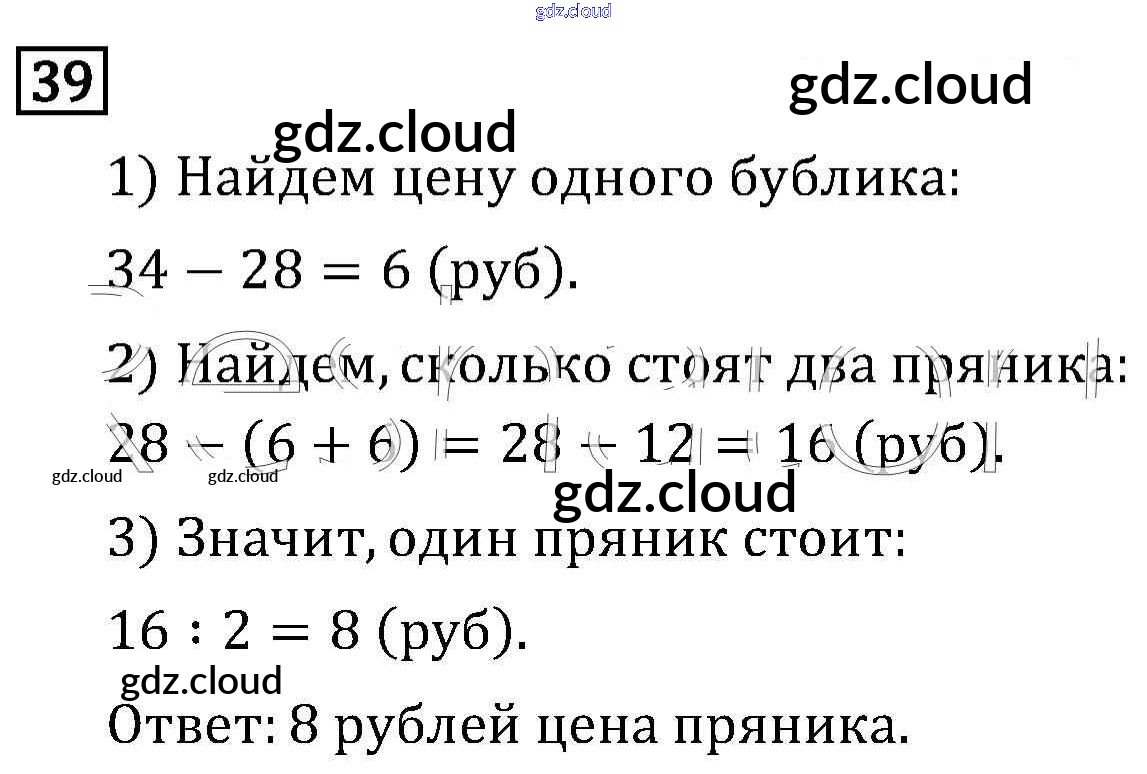 Ответ на задание 39 Учебник Математика за 3 (третий) класс Рудницкая, Юдачева Начальная школа XXI века 2016 Часть 1, 2
