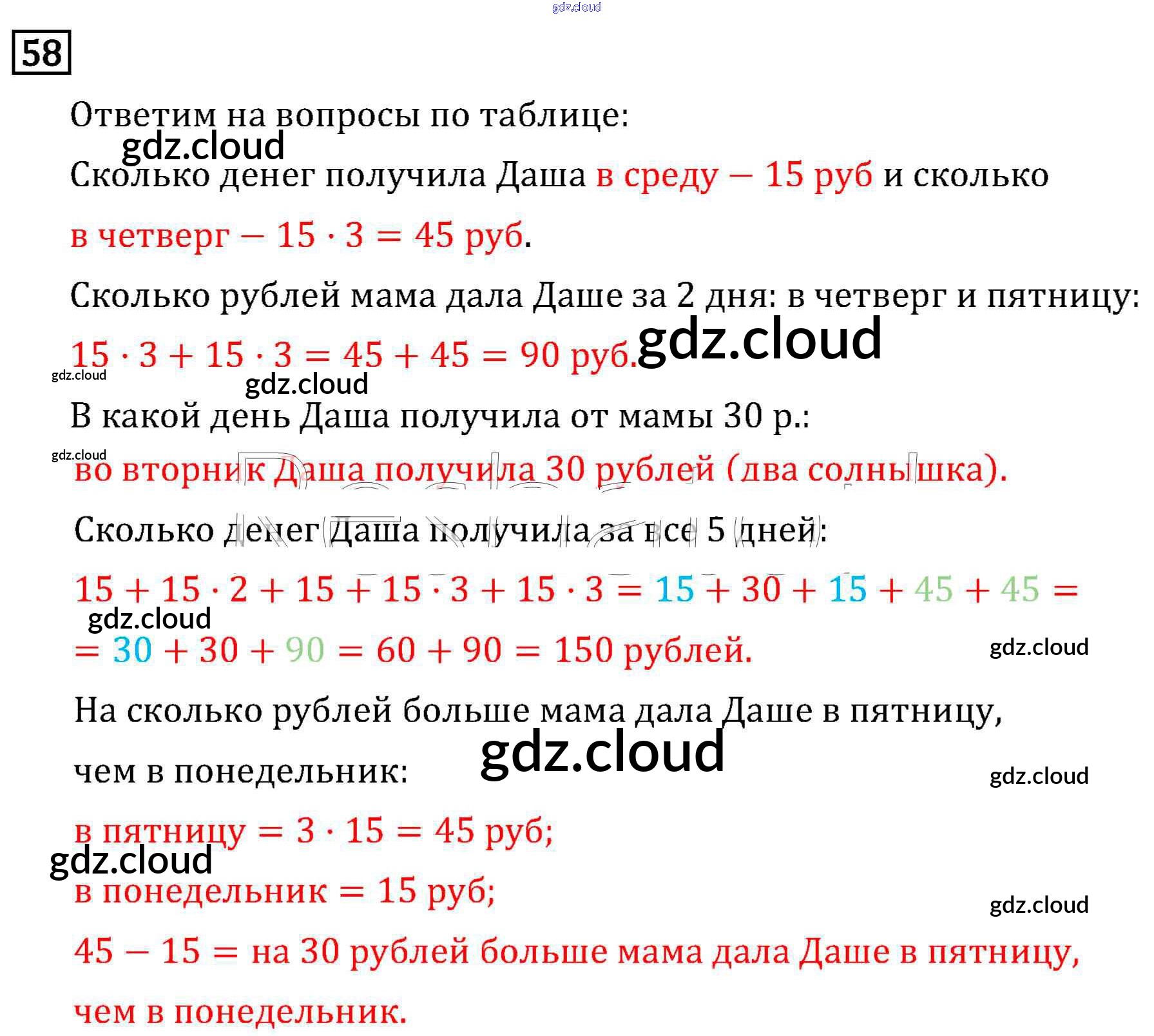 Ответ на задание 58 Учебник Математика за 3 (третий) класс Рудницкая, Юдачева Начальная школа XXI века 2016 Часть 1, 2