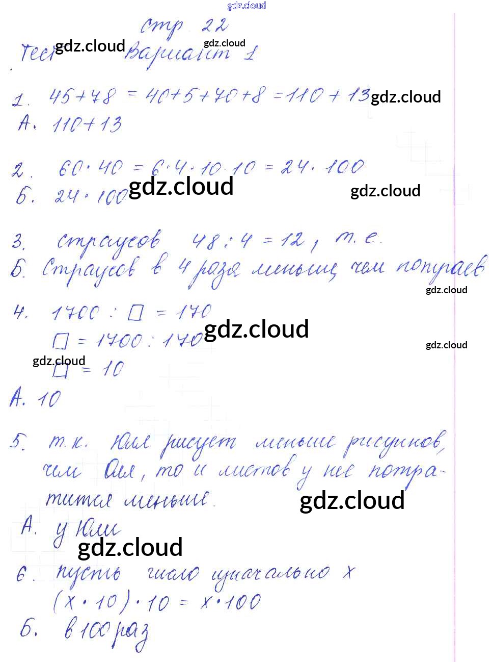 Ответ на задание 22 Тесты и самостоятельные работы для текущего контроля Математика за 3 (третий) класс Нефедова Планета знаний 2017