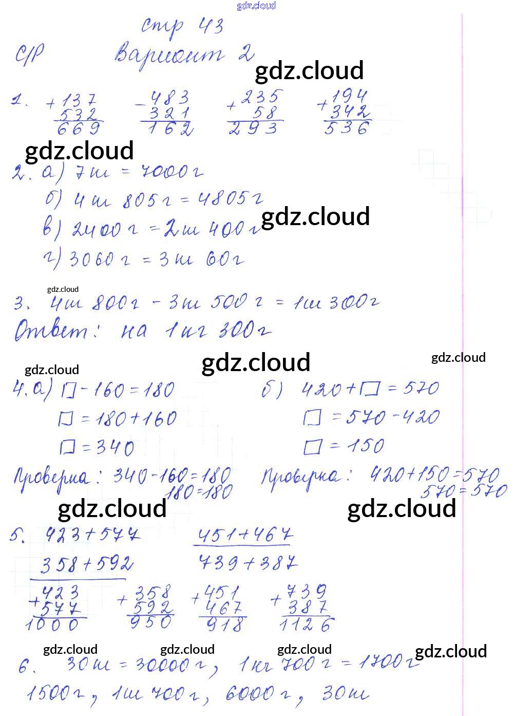 Ответ на задание 43 Тесты и самостоятельные работы для текущего контроля Математика за 3 (третий) класс Нефедова Планета знаний 2017