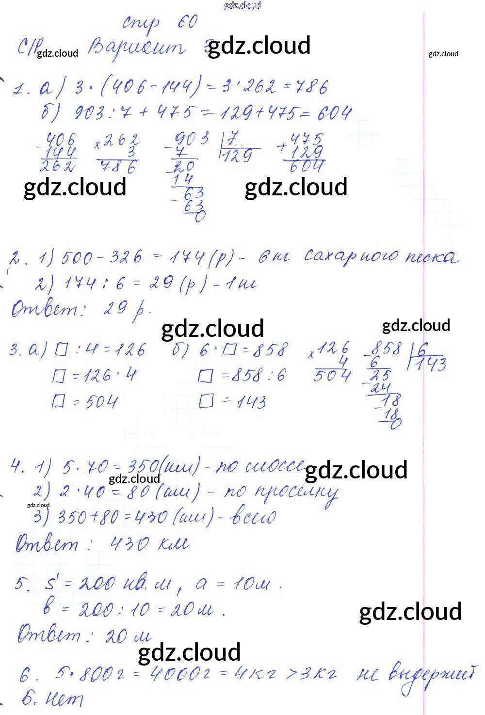 Ответ на задание 60 Тесты и самостоятельные работы для текущего контроля Математика за 3 (третий) класс Нефедова Планета знаний 2017