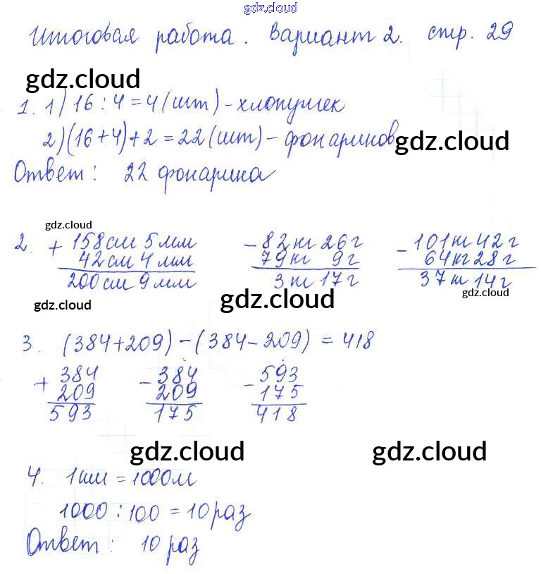 Ответ на задание 29 Тетрадь для контрольных работ Математика за 3 (третий) класс Рудницкая, Юдачева Начальная школа XXI века 2017