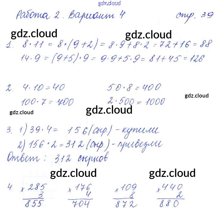 Ответ на задание 39 Тетрадь для контрольных работ Математика за 3 (третий) класс Рудницкая, Юдачева Начальная школа XXI века 2017