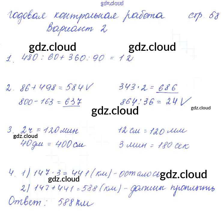 Ответ на задание 58 Тетрадь для контрольных работ Математика за 3 (третий) класс Рудницкая, Юдачева Начальная школа XXI века 2017
