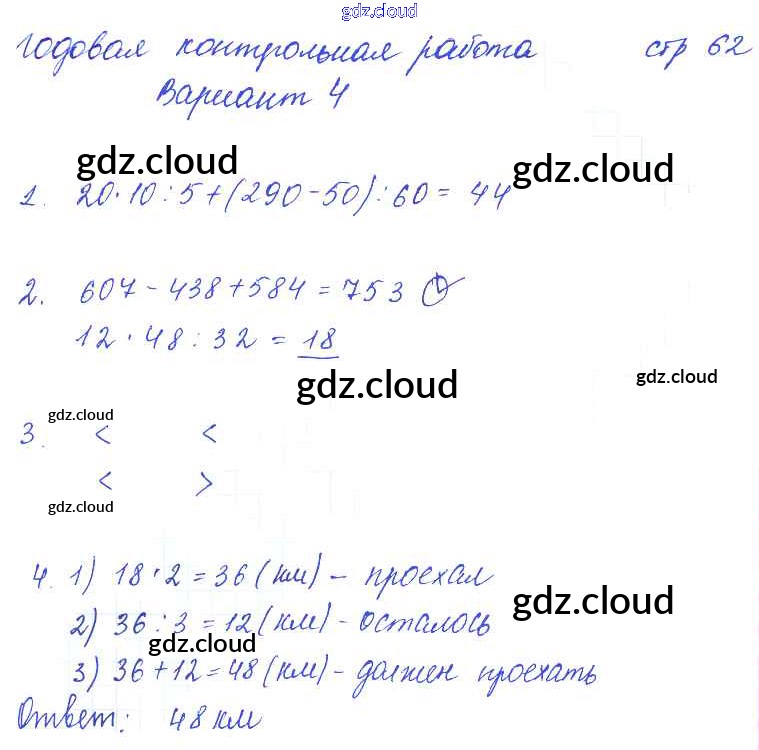 Ответ на задание 62 Тетрадь для контрольных работ Математика за 3 (третий) класс Рудницкая, Юдачева Начальная школа XXI века 2017