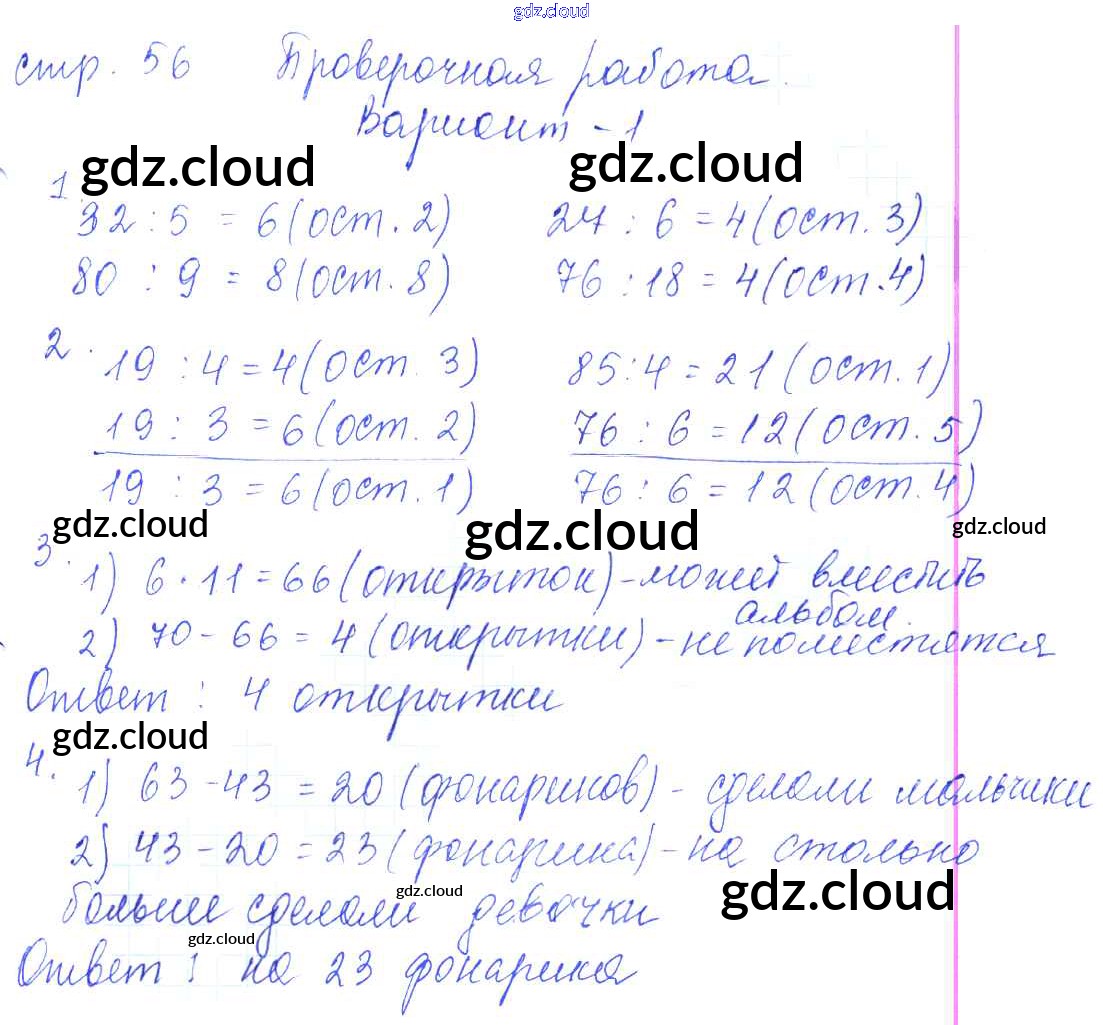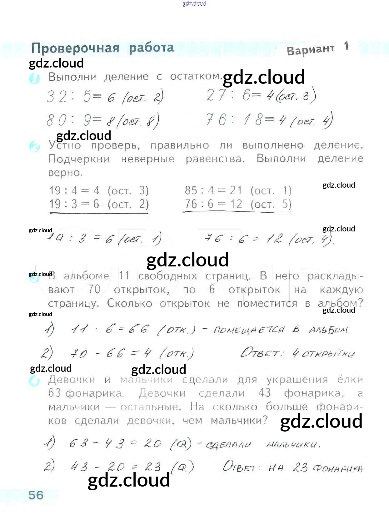 Ответ на задание 56 Проверочные работы Математика за 3 (третий) класс Волкова Школа России 2014