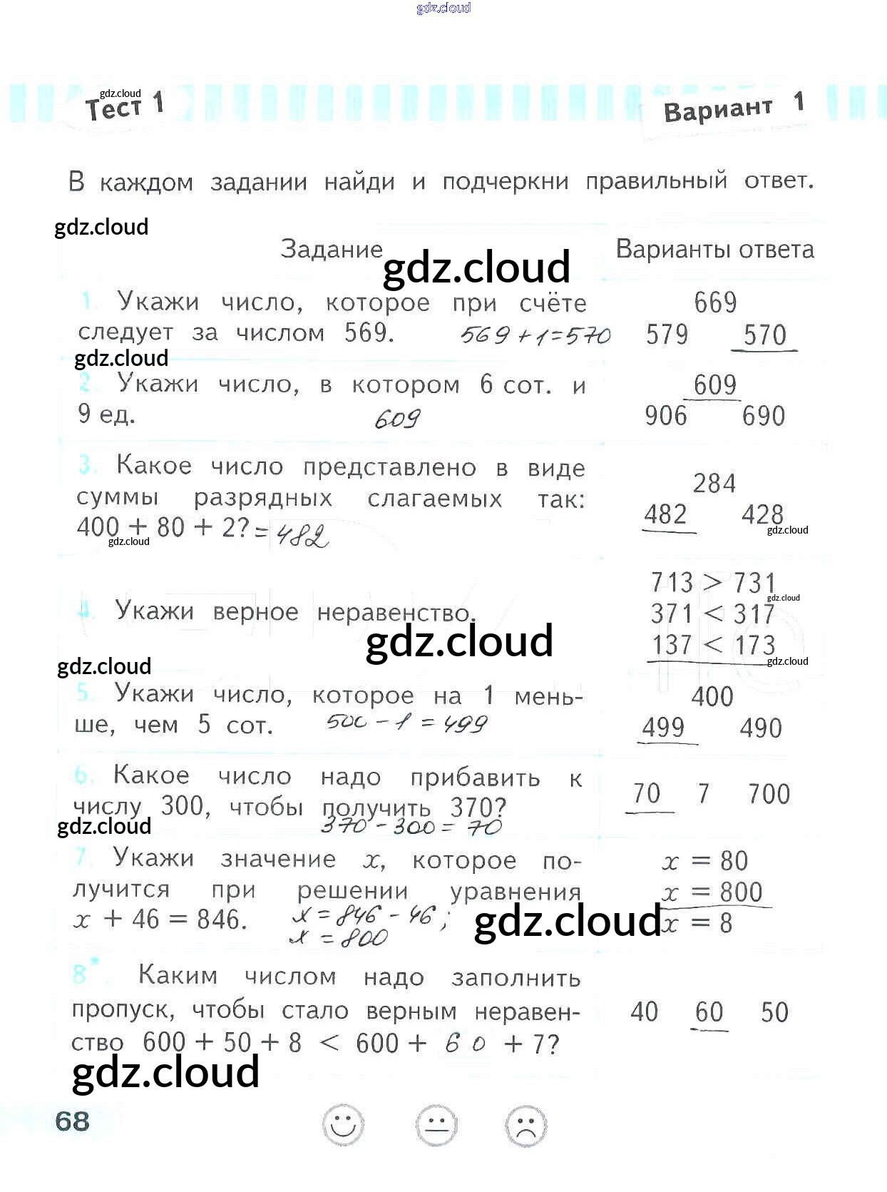 Ответ на задание 68 Проверочные работы Математика за 3 (третий) класс Волкова Школа России 2014