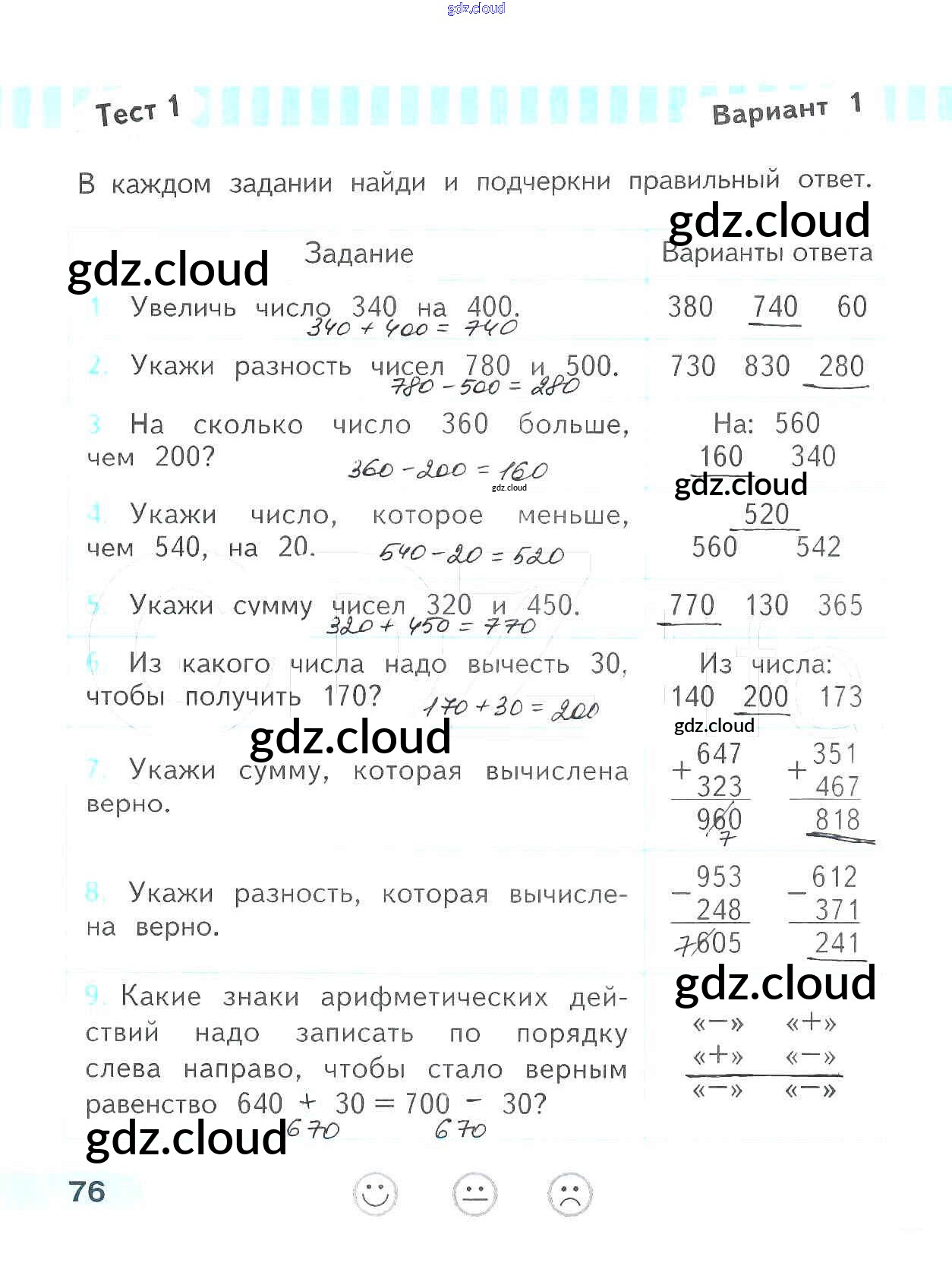 Ответ на задание 76 Проверочные работы Математика за 3 (третий) класс Волкова Школа России 2014