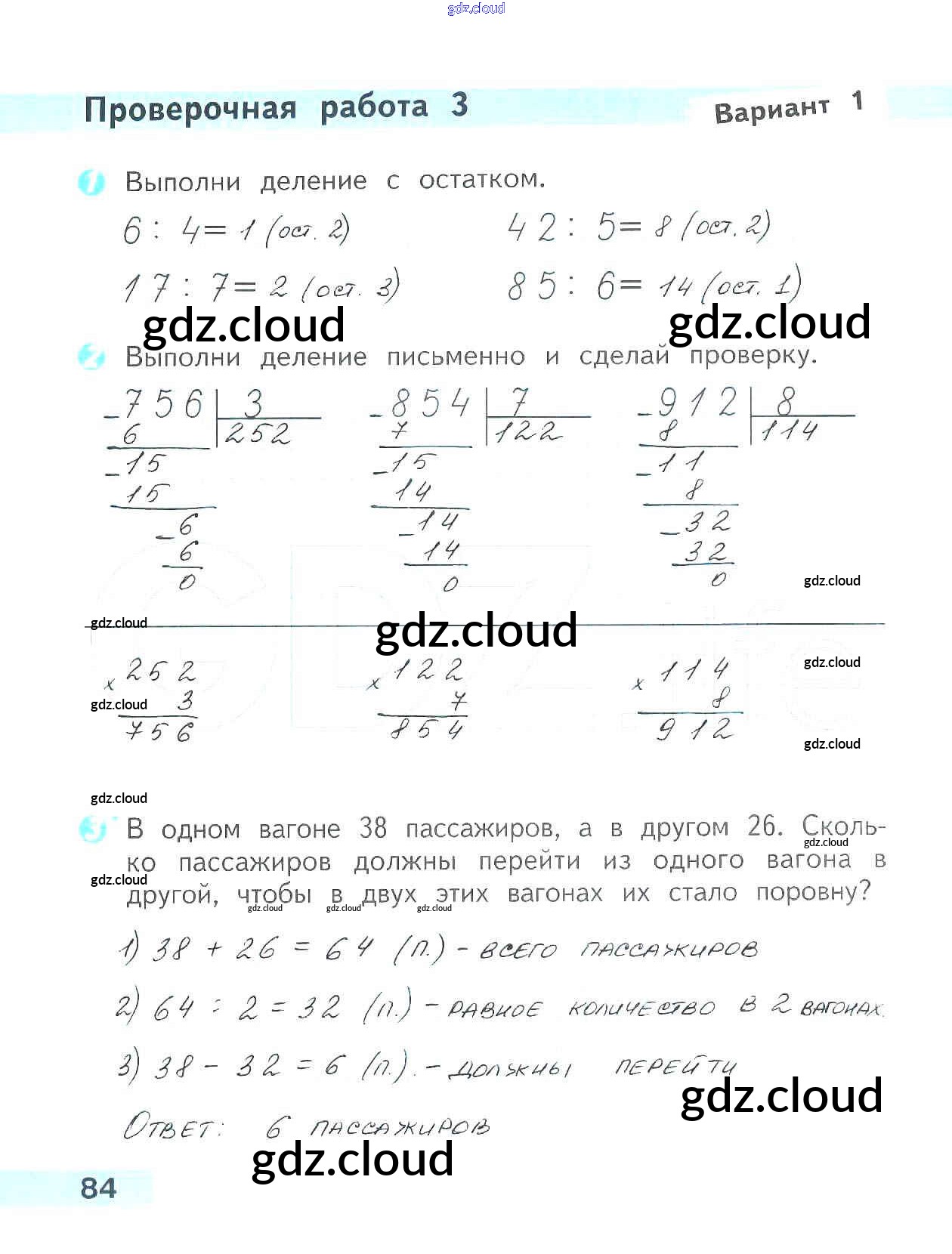 Ответ на задание 84 Проверочные работы Математика за 3 (третий) класс Волкова Школа России 2014