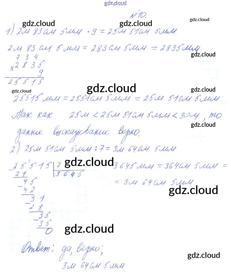 Ответ на задание 10 Учебник Математика за 4 (четвертый) класс Башмаков, Нефедова Планета знаний 2012 Часть 1, 2