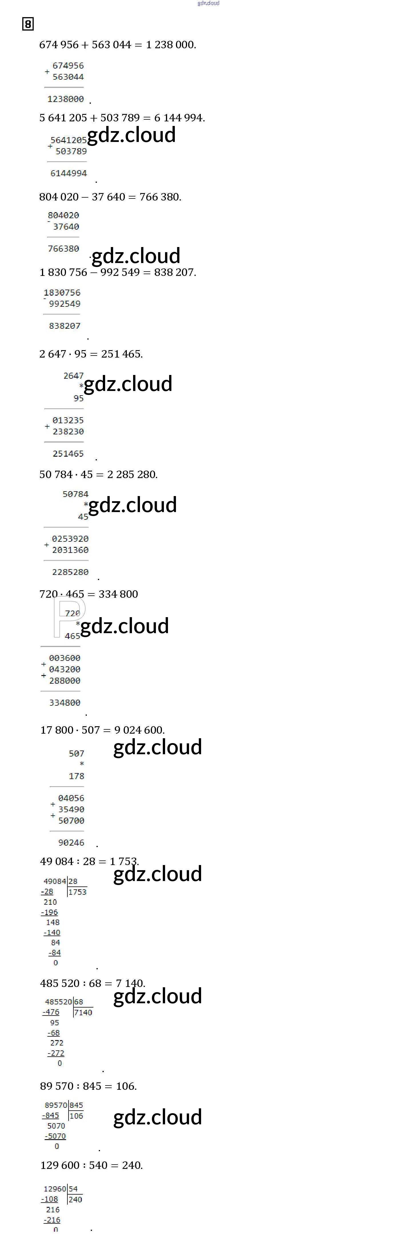 Ответ на задание 8 Учебник Математика за 4 (четвертый) класс Башмаков, Нефедова Планета знаний 2012 Часть 1, 2