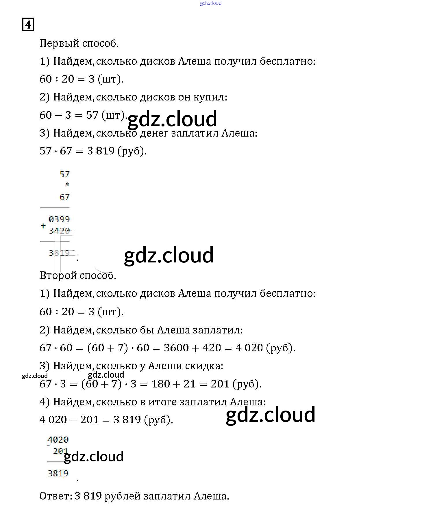Ответ на задание 4 Учебник Математика за 4 (четвертый) класс Башмаков, Нефедова Планета знаний 2012 Часть 1, 2