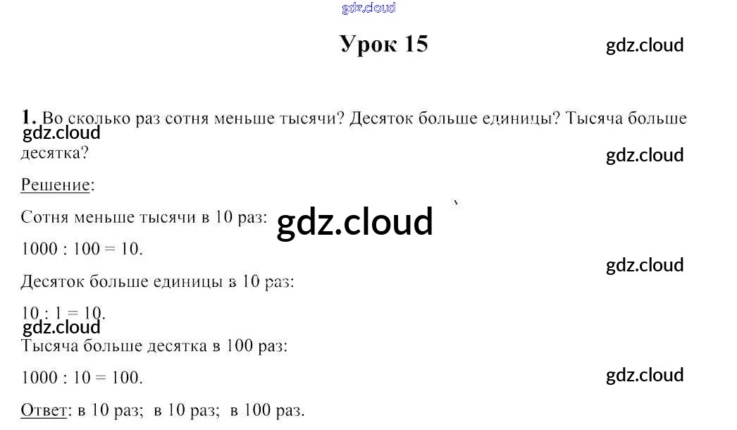 Ответы к уроку 15 по Математике 4 класс Учебник Чеботаревская Часть 1, 2 Начальная школа