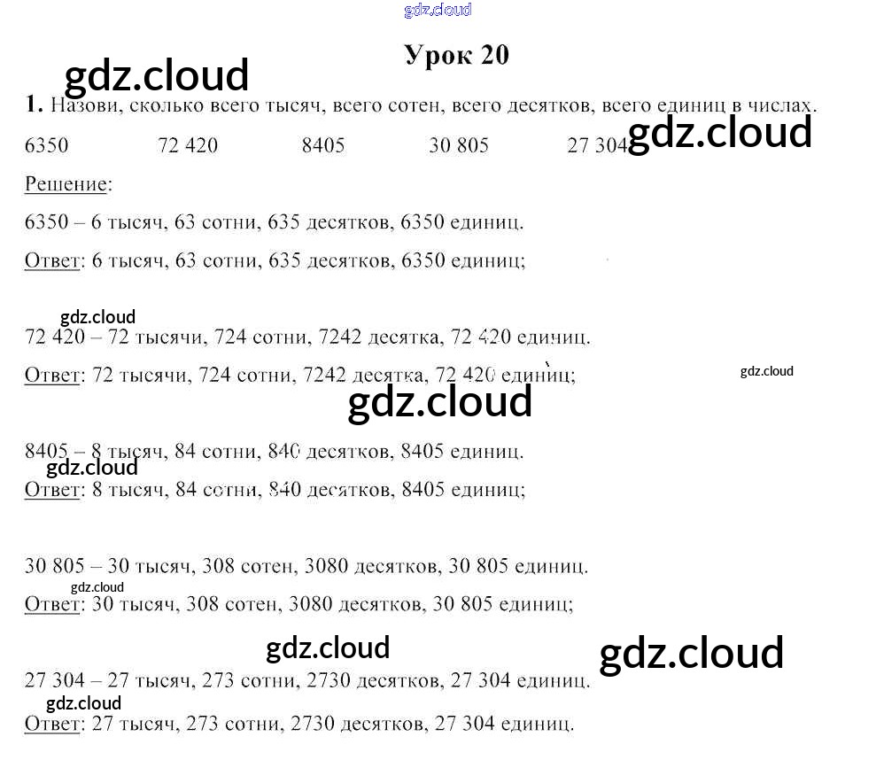 Ответы к уроку 20 по Математике 4 класс Учебник Чеботаревская Часть 1, 2 Начальная школа