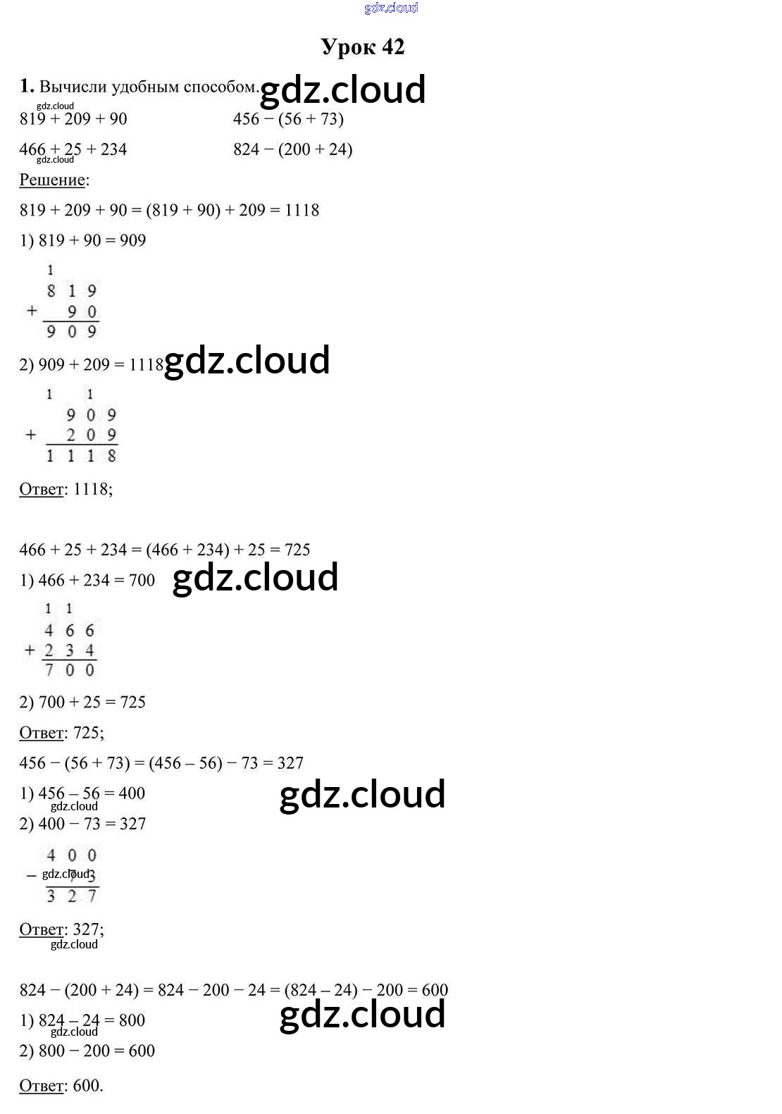 Ответы к уроку 42 по Математике 4 класс Учебник Чеботаревская Часть 1, 2 Начальная школа