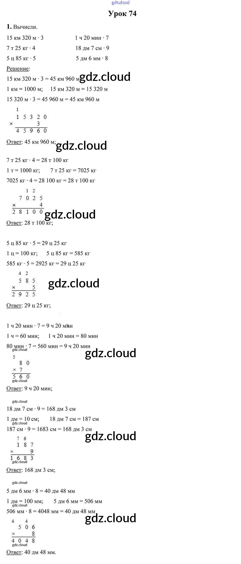 Ответы к уроку 74 по Математике 4 класс Учебник Чеботаревская Часть 1, 2 Начальная школа