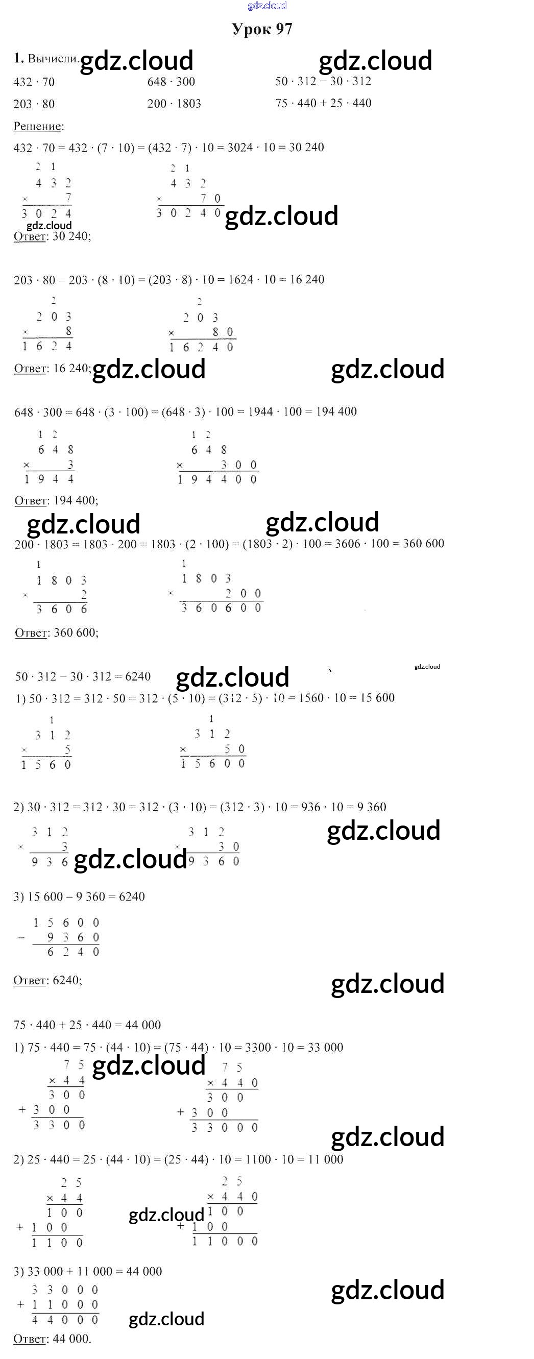 Ответы к уроку 97 по Математике 4 класс Учебник Чеботаревская Часть 1, 2 Начальная школа