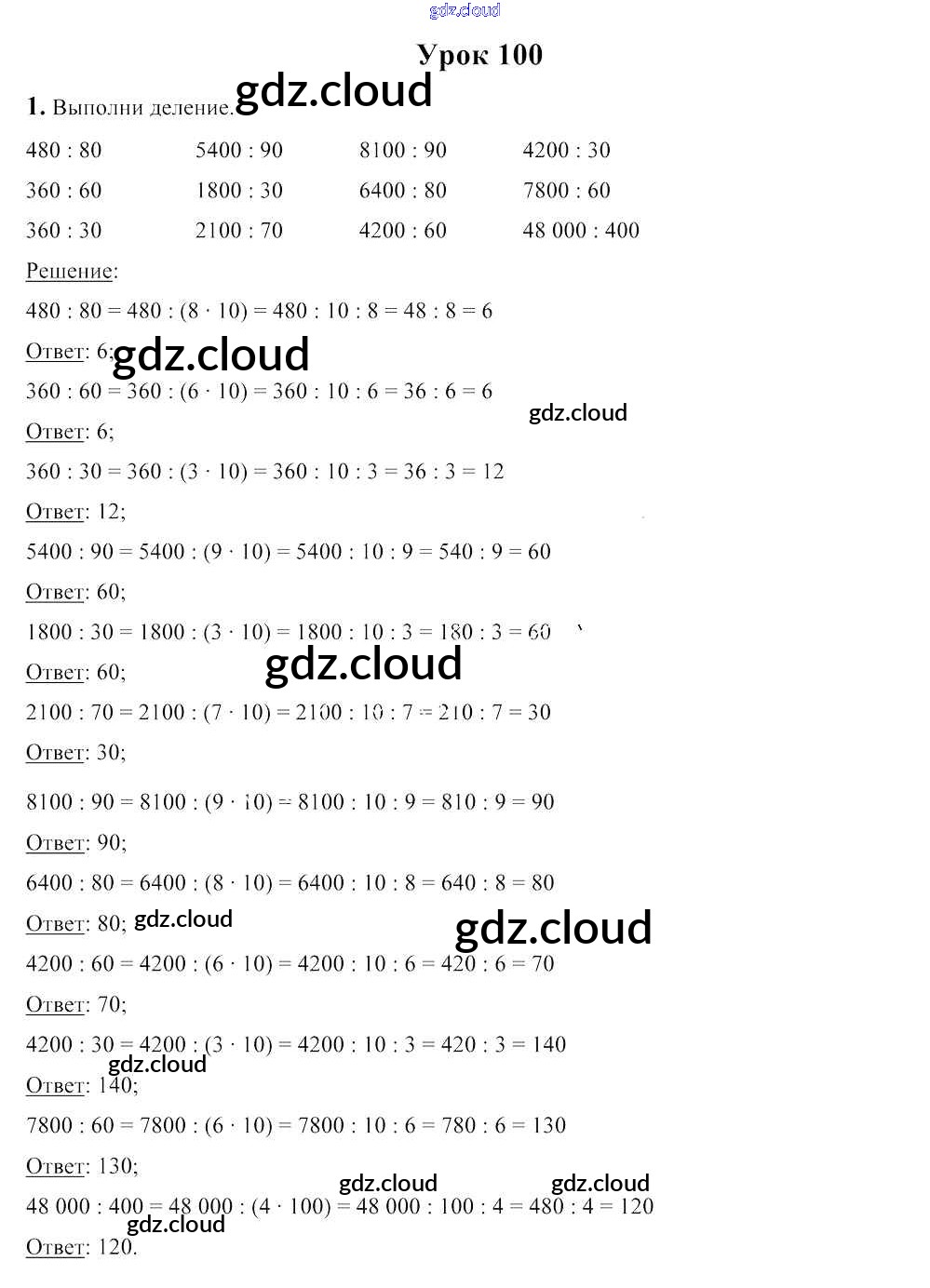 Ответы к уроку 100 по Математике 4 класс Учебник Чеботаревская Часть 1, 2 Начальная школа