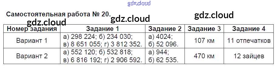 Ответ на задание 20 Контрольно-измерительные материалы (КИМ) Математика за 4 (четвертый) класс Ситникова 2017