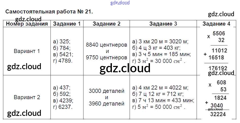Ответы. Самостоятельные работы по Математике 4 класс Контрольно-измерительные материалы (КИМ) Ситникова ВАКО