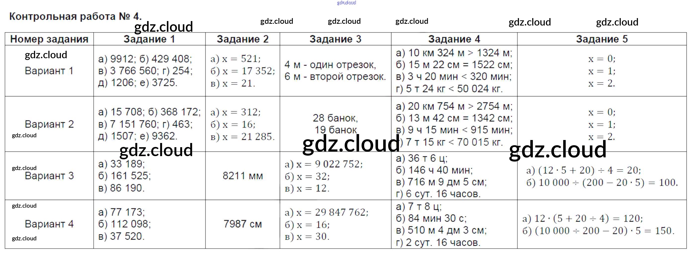 Ответ на задание 4 Контрольно-измерительные материалы (КИМ) Математика за 4 (четвертый) класс Ситникова 2017