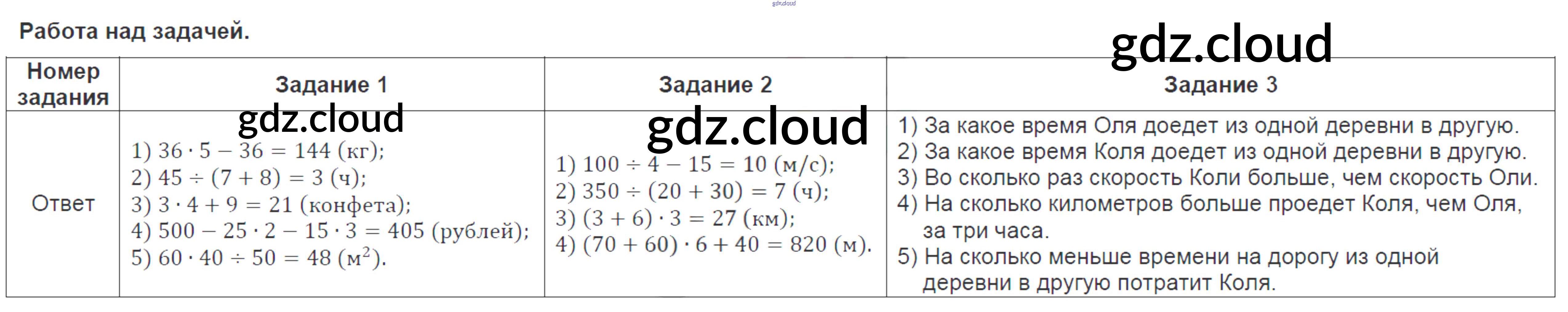 Ответы. Работа над задачей по Математике 4 класс Контрольно-измерительные материалы (КИМ) Ситникова ВАКО