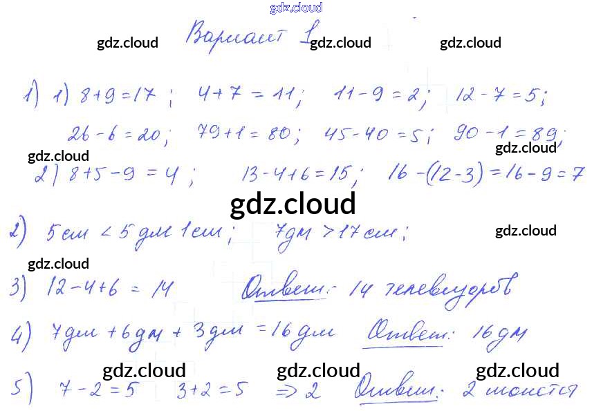 Ответ на задание Вариант 1 Контрольные работы Математика за 1, 2, 3, 4 (первый, второй, третий, четвертый) класс Волкова Школа России 2017