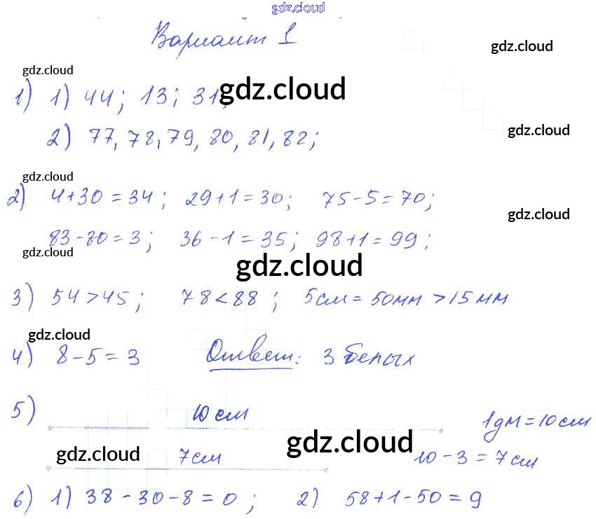 Ответ на задание Вариант 1 Контрольные работы Математика за 1, 2, 3, 4 (первый, второй, третий, четвертый) класс Волкова Школа России 2017