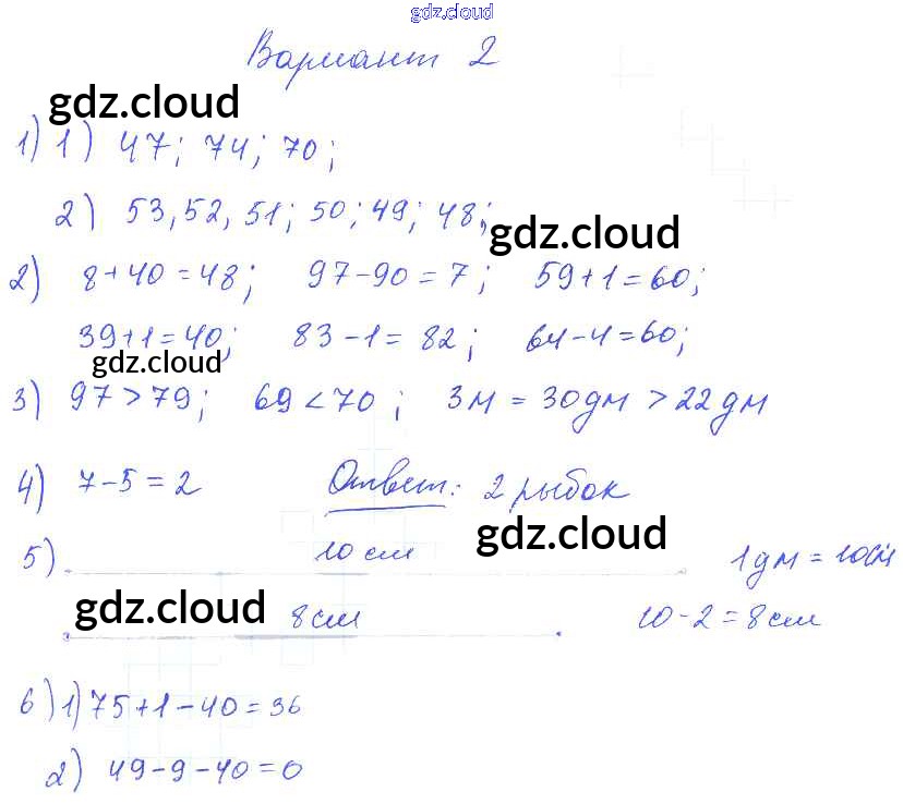 Ответ на задание Вариант 2 Контрольные работы Математика за 1, 2, 3, 4 (первый, второй, третий, четвертый) класс Волкова Школа России 2017