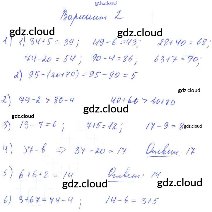 Ответ на задание Вариант 2 Контрольные работы Математика за 1, 2, 3, 4 (первый, второй, третий, четвертый) класс Волкова Школа России 2017