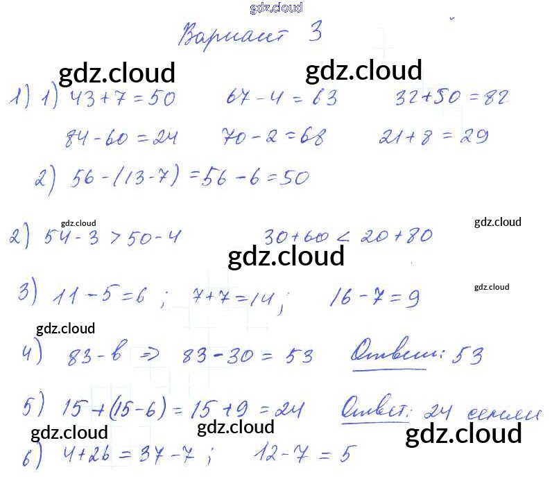 Ответ на задание Вариант 3 Контрольные работы Математика за 1, 2, 3, 4 (первый, второй, третий, четвертый) класс Волкова Школа России 2017