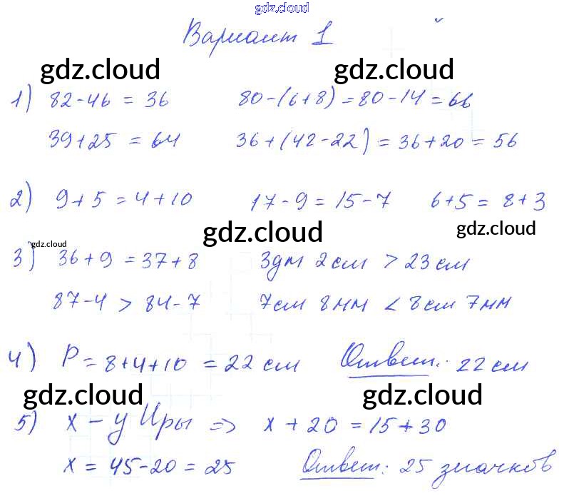 Ответ на задание Вариант 1 Контрольные работы Математика за 1, 2, 3, 4 (первый, второй, третий, четвертый) класс Волкова Школа России 2017