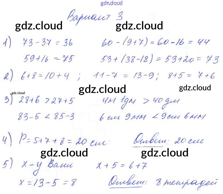 Ответ на задание Вариант 3 Контрольные работы Математика за 1, 2, 3, 4 (первый, второй, третий, четвертый) класс Волкова Школа России 2017