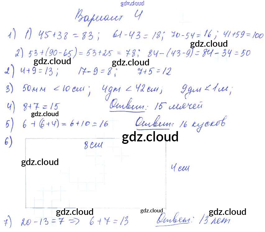 Ответ на задание Вариант 4 Контрольные работы Математика за 1, 2, 3, 4 (первый, второй, третий, четвертый) класс Волкова Школа России 2017