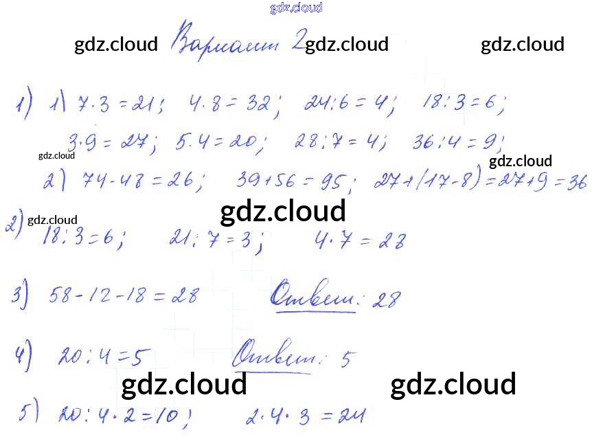 Ответ на задание Вариант 2 Контрольные работы Математика за 1, 2, 3, 4 (первый, второй, третий, четвертый) класс Волкова Школа России 2017