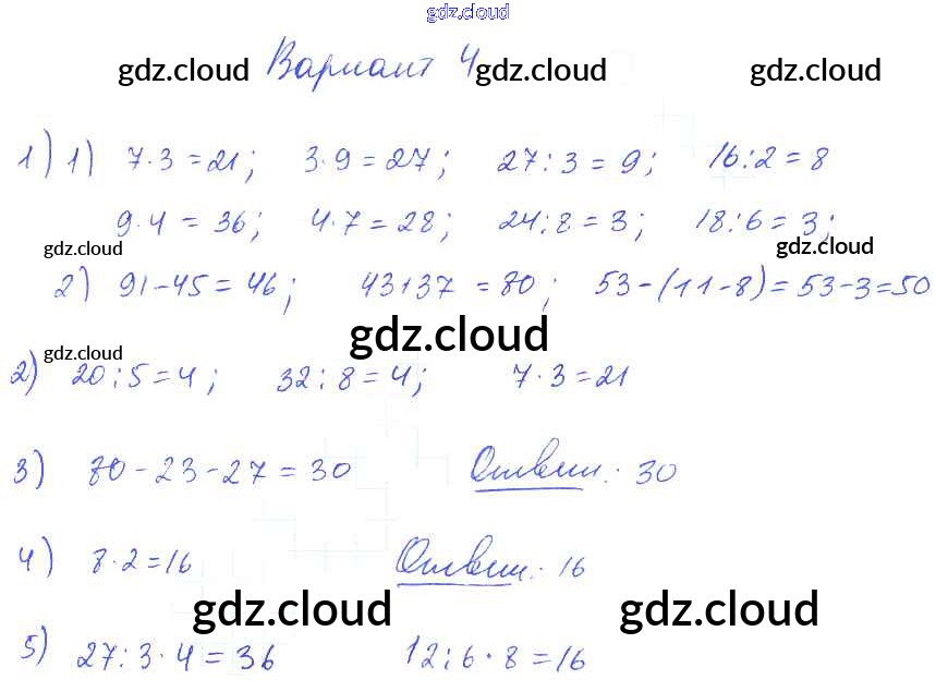 Ответ на задание Вариант 4 Контрольные работы Математика за 1, 2, 3, 4 (первый, второй, третий, четвертый) класс Волкова Школа России 2017