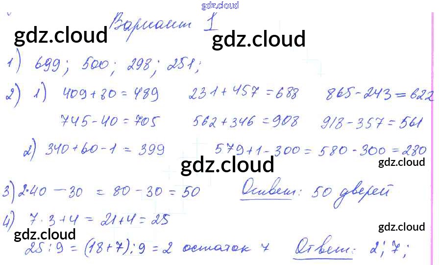 Ответ на задание Вариант 1 Контрольные работы Математика за 1, 2, 3, 4 (первый, второй, третий, четвертый) класс Волкова Школа России 2017