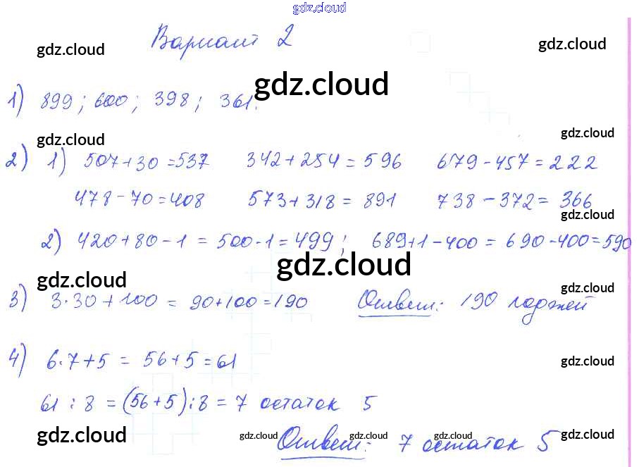Ответ на задание Вариант 2 Контрольные работы Математика за 1, 2, 3, 4 (первый, второй, третий, четвертый) класс Волкова Школа России 2017