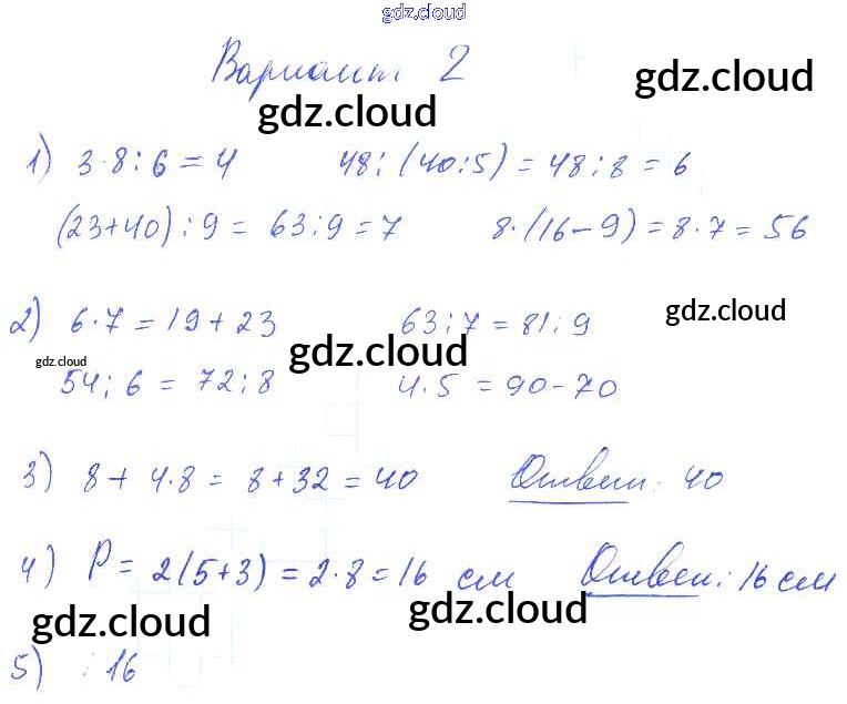 Ответ на задание Вариант 2 Контрольные работы Математика за 1, 2, 3, 4 (первый, второй, третий, четвертый) класс Волкова Школа России 2017