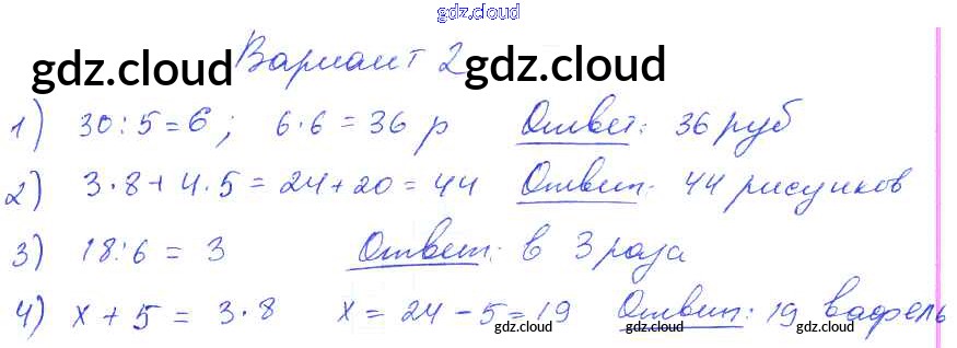 Ответ на задание Вариант 2 Контрольные работы Математика за 1, 2, 3, 4 (первый, второй, третий, четвертый) класс Волкова Школа России 2017