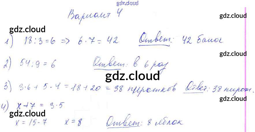 Ответ на задание Вариант 4 Контрольные работы Математика за 1, 2, 3, 4 (первый, второй, третий, четвертый) класс Волкова Школа России 2017