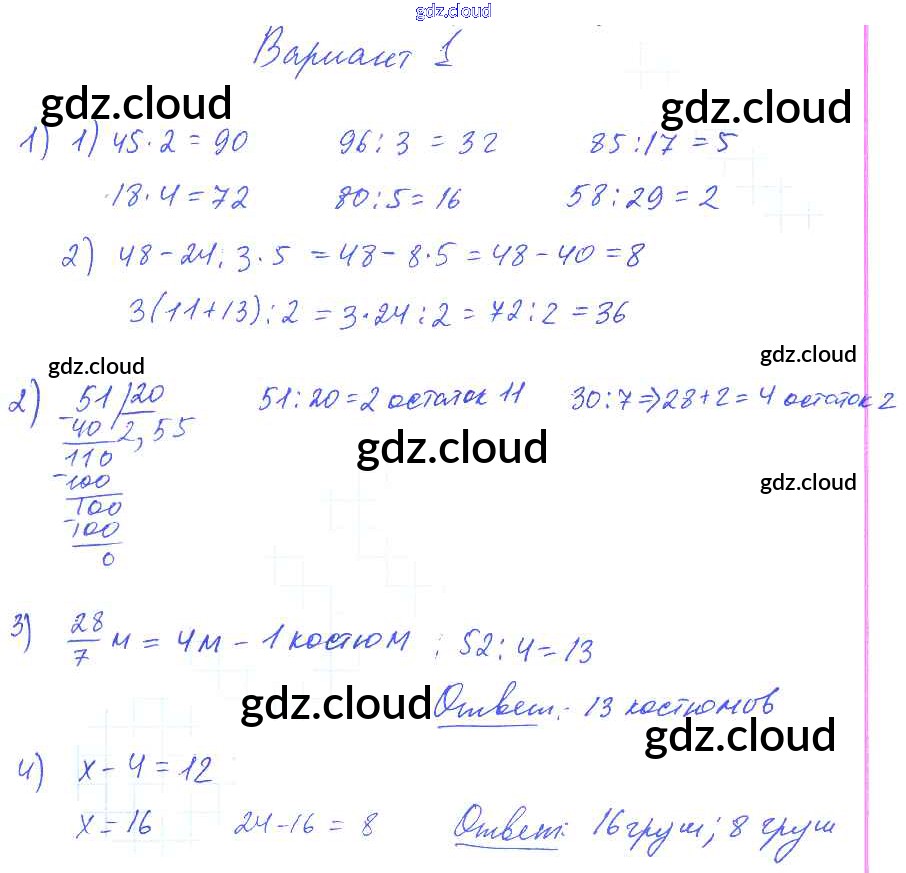 Ответ на задание Вариант 1 Контрольные работы Математика за 1, 2, 3, 4 (первый, второй, третий, четвертый) класс Волкова Школа России 2017