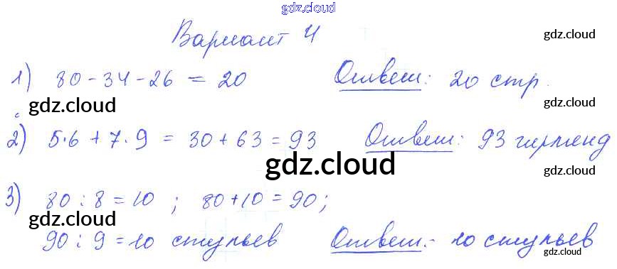 Ответ на задание Вариант 4 Контрольные работы Математика за 1, 2, 3, 4 (первый, второй, третий, четвертый) класс Волкова Школа России 2017